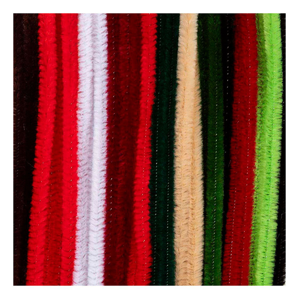 Set van 50 pijpenragers/chenilledraad in kerstkleuren.