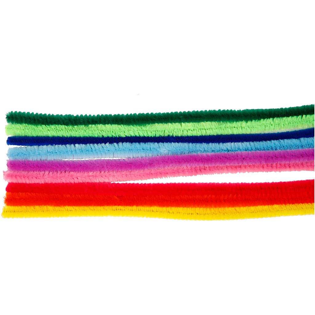 Het is heerlijk knutselen deze gekleurde, zachte en buigzame draden. In het zakje zitten 25 stuks met verschillende kleuren. Het chenille draad heeft een lengte van 30 centimeter. Diameter draad: 9 mm.