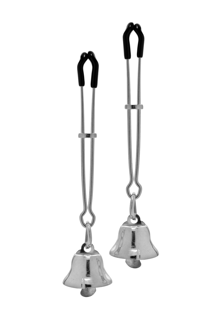 Audio erotiek is in het spel als deze slinkse belletjes rinkelen. Je speeltje zal er verleidelijk uitzien en klinken als deze klemmen precies zo geplaatst zijn. Aan elk uiteinde van deze tepelklemmen in pincetstijl is een belletje bevestigd dat een laag rinkelend geluid maakt als ze in beweging zijn. De met vinyl beklede uiteinden geven comfort en grip, terwijl de verschuifbare ring variërende hoeveelheden druk mogelijk maakt. Ideaal voor zowel beginners als liefhebbers van klemmen.