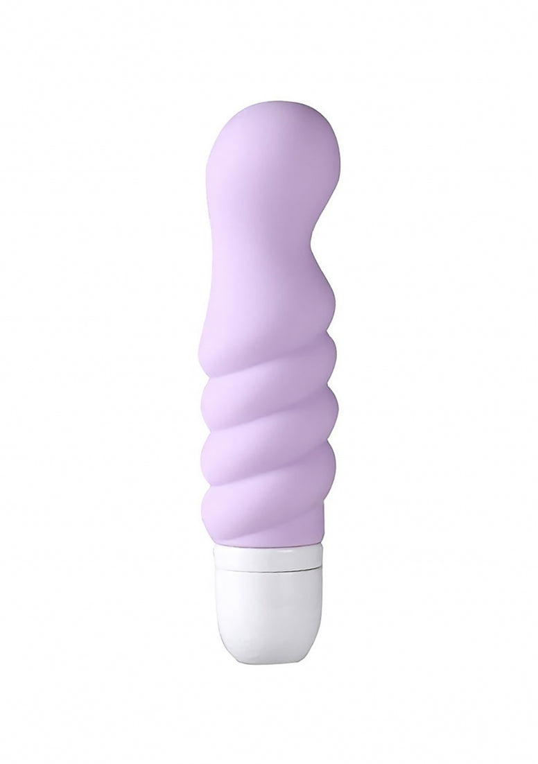 Maia Toys Chloe Siliconen G-Spot Lavendel Vibrator. Silicone kronkelige, gebogen, niet metalen schacht. Wervelend patroon