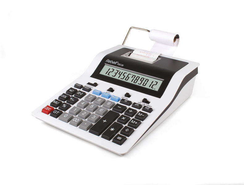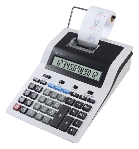 12-cijferige wit-zwarte printcalculator voor professionals in business, accounting en finance met snelle tweekleurendruk (2 lijnen per seconde). Plastic knoppen. Wisselstroomstekker en back-upbatterij. Knoppen %, +/, 00, % (verschil in procenten). Geheugen met 3 knoppen. Belastingberekening (TAX+, TAX). Artikelteller (IC), valutaberekening. MU-functie (Mark-Up), Total sum (GT-functie). Afrondingskiezer (, 5/4, ). Decimale selector (A, 0, 2, 4, 6, F). Correctie functie. Gewicht: 740g, Afmetingen: 255 x 190 x 70 mm.