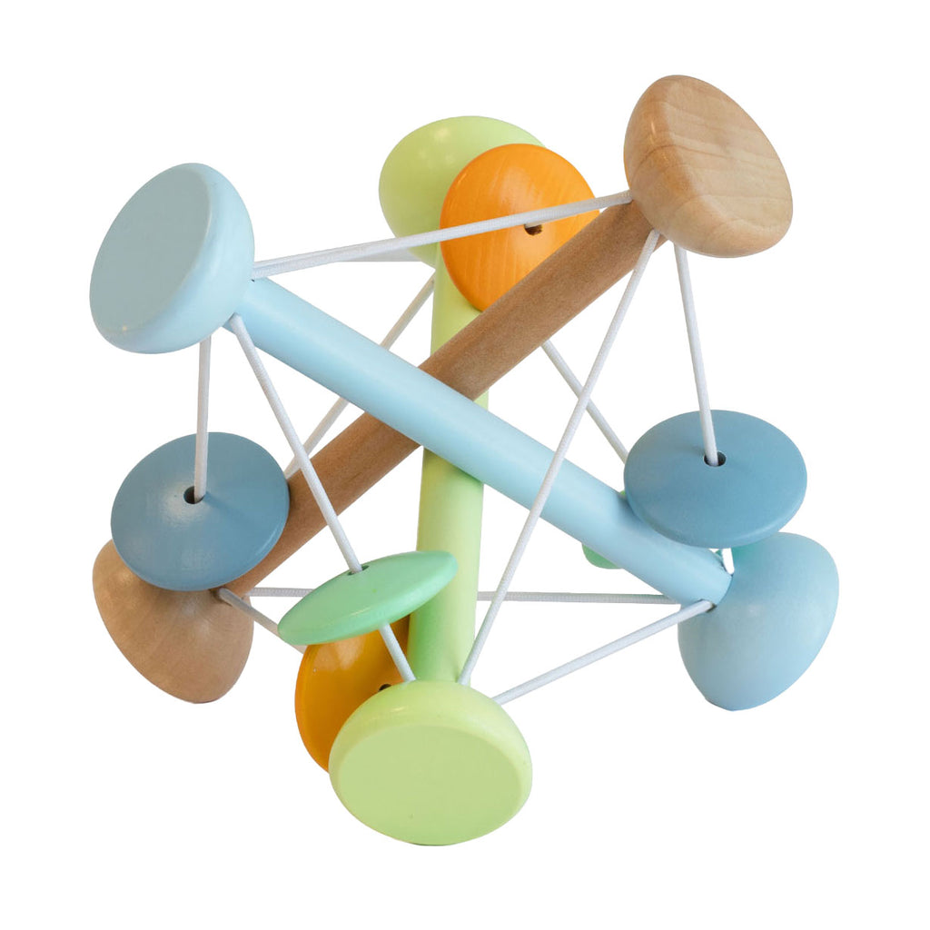 De Magic New Ball is houten speelgoed met verschillende vormen en kleuren, voor kinderen vanaf 18 maanden.