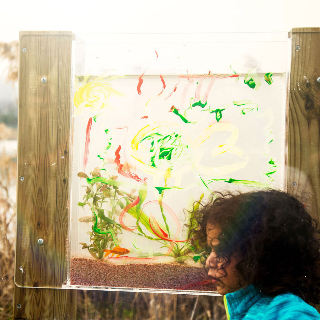 Houten Waterbak Planten & Vissen. De waterbak is gemaakt van hout en plexiglas (ook de onderkant van de bak is van plexiglas) en is geschikt voor scholen en kinderdagverblijven. De set komt met een waterpomp die je kan gebruiken om het water weg te laten lopen.