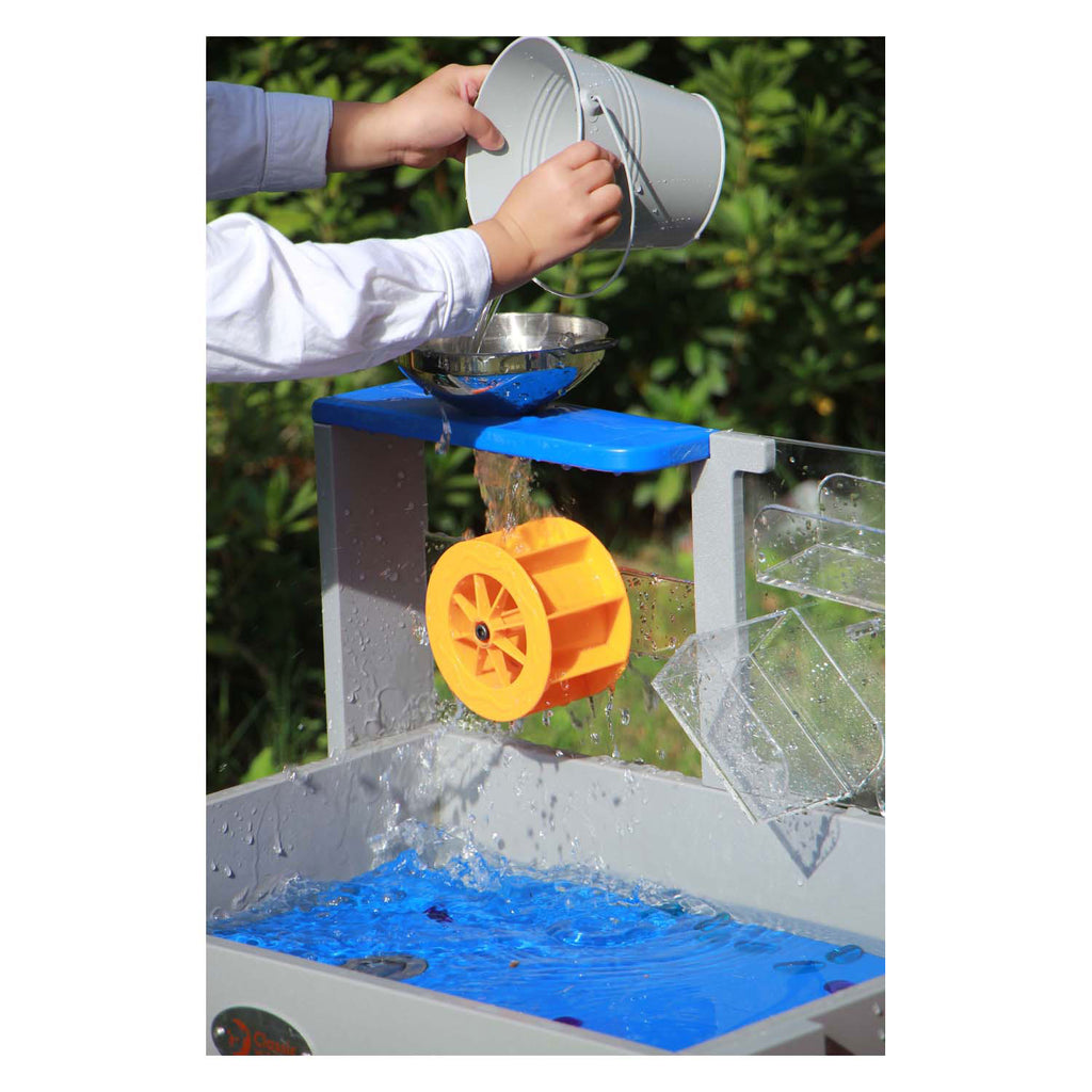 Robuuste zand- en watertafel van Classic World, geschikt voor in de tuin, op school of de kinderopvang. Inclusief zand/watertrechter, 3 trechters voor het creeëren van waterstromen en een molentje. Afmetingen: 60 x 40 x 65 cm.