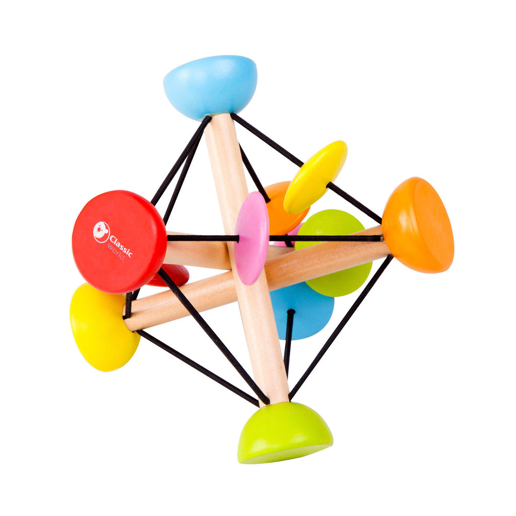 Deze magische bal kan op verschillende manieren bewegen, zoals de gekleurde noppen en schijfjes, maar ook de hele vorm van de bal kun je platdrukken!