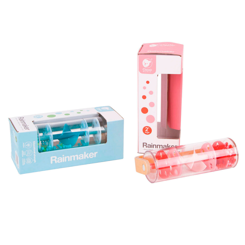 Dit mooie instrument kun je schudden, draaien en rollen voor verschillende geluiden! Als je het draait, vallen de balletjes door het instrument, wat een geluid van regendruppels veroorzaakt.