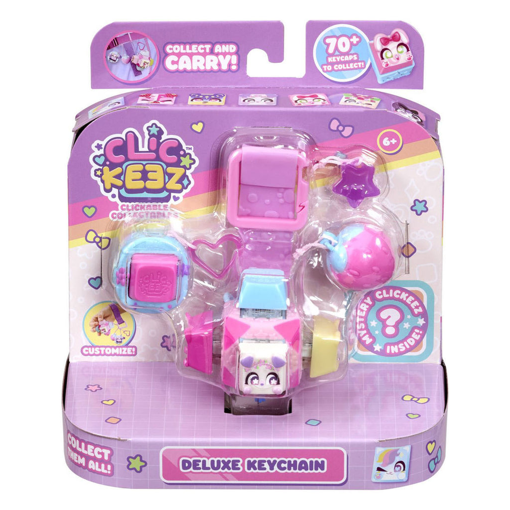 Met de Clickeez Deluxe Keychain heb je jouw favoriete Clickeez altijd binnen handbereik. Deze set bevat een stijlvolle sleutelhanger, vier Clickeez en bedels die je naar wens kunt mixen en matchen. Klik en combineer om jouw unieke sleutelhanger te creëren en geniet van het ontspannende, bevredigende klikgevoel waar Clickeez om bekend staat.