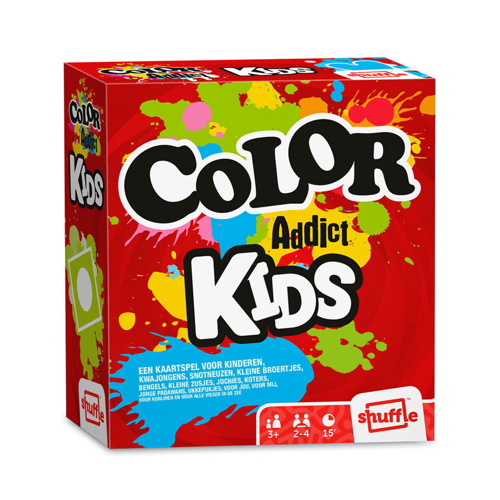 Speel al je kaarten uit door telkens een kaart met dezelfde vorm of kleur te leggen. Dankzij deze aangepaste versie kunnen ook de allerkleinsten meespelen met Color Addict! Eenvoudiger, maar nog altijd even leuk... Om plezier te maken hoef je niet te kunnen lezen! Een kaartspel voor kinderen, kwajongens, snotneuzen, kleine broertjes, bengels, kleine zusjes, jochies, koters, jonge padawans, ukkepukjes, voor jou, voor mij, voor konijnen en voor alle vissen in de zee! Geschikt voor 2 tot 4 spelers vanaf 3 jaar.