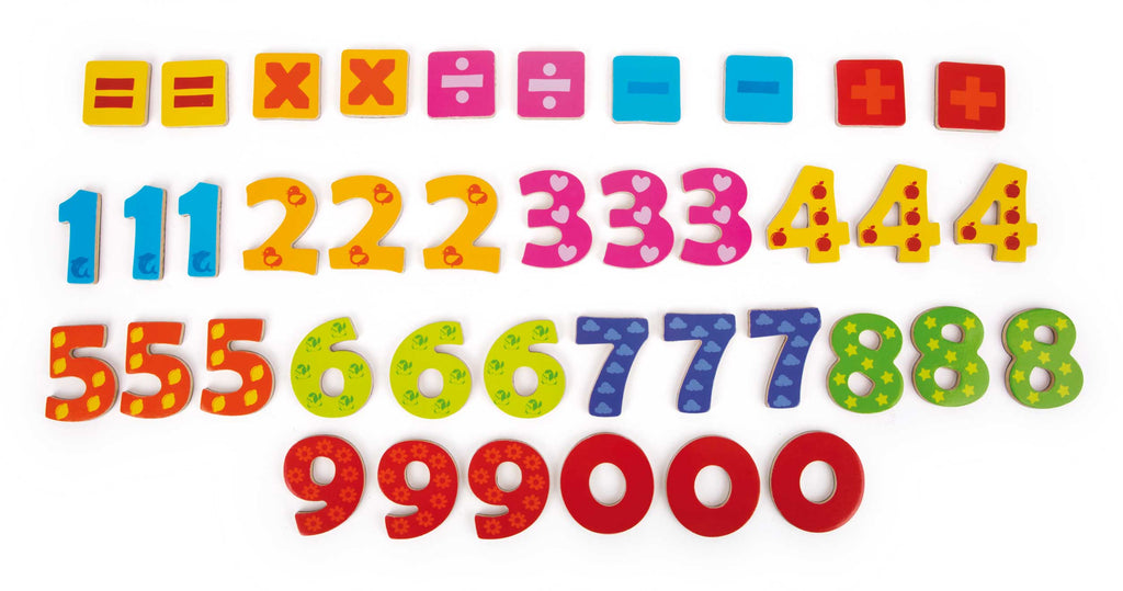 Voor cijfertovenaars! Deze set bevat 40 stukjes met de cijfers 0 tot en met 9 op kleurrijk geverfd, magnetisch, gelamineerd hout. De magnetische cijfers kunnen handig worden opgeborgen in de meegeleverde houten kist. Zo kunnen kinderen hun eigen eerste wiskundige vergelijkingen opstellen en oplossen. De cijfers kunnen op elk magnetisch oppervlak worden bevestigd en zorgen voor veel inzichtelijk speelplezier dat helpt bij het opbouwen van begrip van getallen. Een geweldig cadeau-idee voor kennishongerige kinderen en opkomende wiskundefanaten!