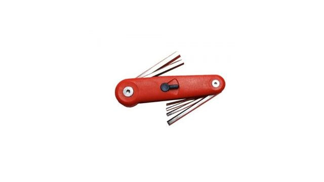 6-delig, zeskant, in chroom-molybdeen-vanadiumstaal (59 Cr-Mo-V4), sleutels verchroomd, in uitklapbare houder, DIN 911