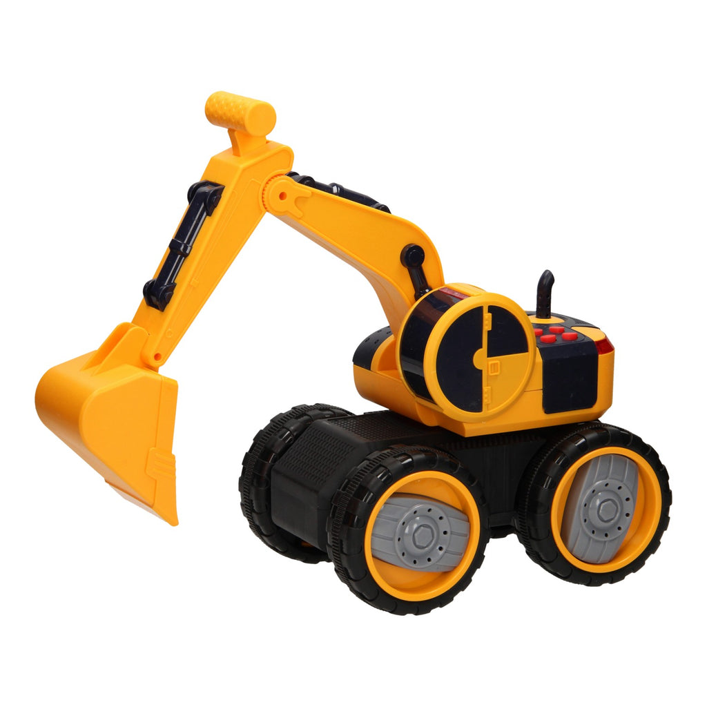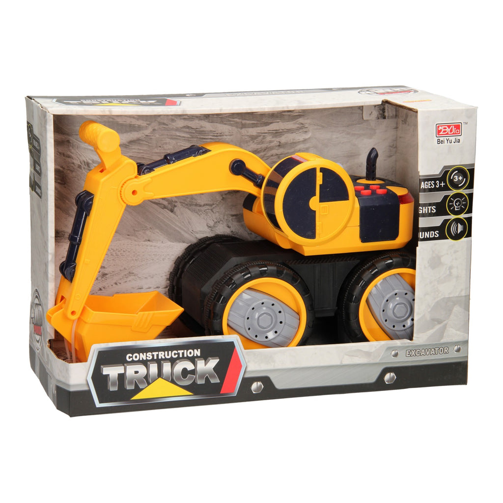Met deze stevig gebouwde zandbak graafmachine van de serie Construction Truck kun je flink gaan graven. Door de bewegende onderdelen en het licht en geluid geeft deze graafmachine een realistische speelervaring. De graafmachine kan 360 graden gedraaid worden en met de hendel op de arm kun je de bak laten bewegen. Druk op de knopjes voor bijpassende geluidseffecten. Door de frictiemotor rolt de graafmachine met één duw soepel over de vloer. Inclusief batterijen.