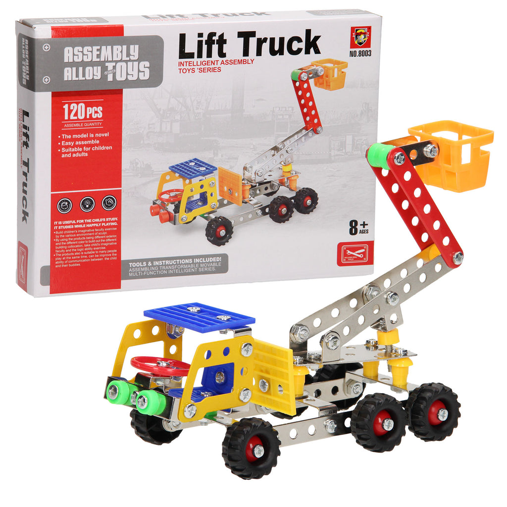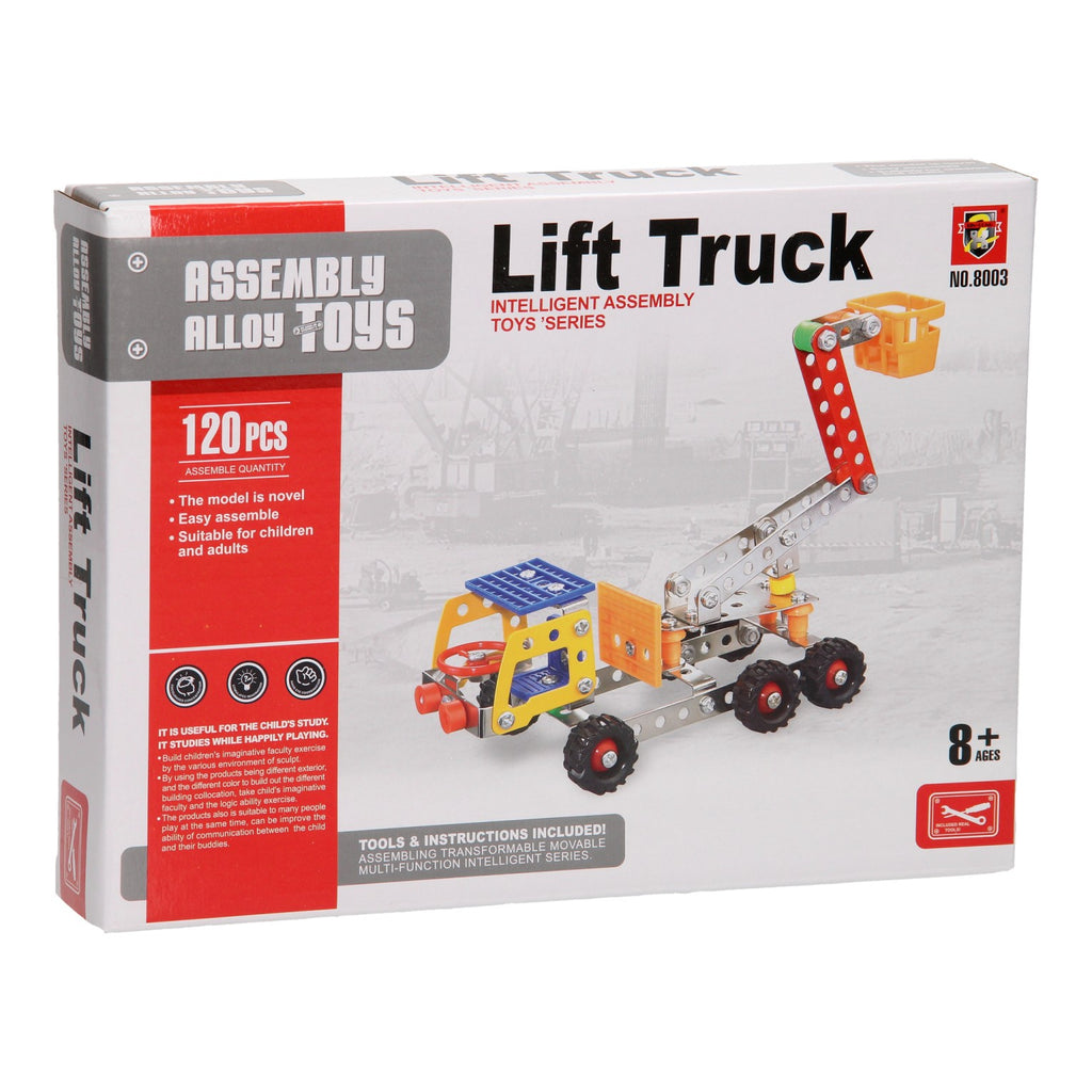 De Constructieset Hoogwerker bestaat uit 120 onderdelen die je in elkaar zet met behulp van het bijgeleverde gereedschap en de gebruiksaanwijzing op de achterkant van de doos. Het eindresultaat is een stoere hoogwerker waarmee je bij de hoogste bomen en gebouwen kunt komen!