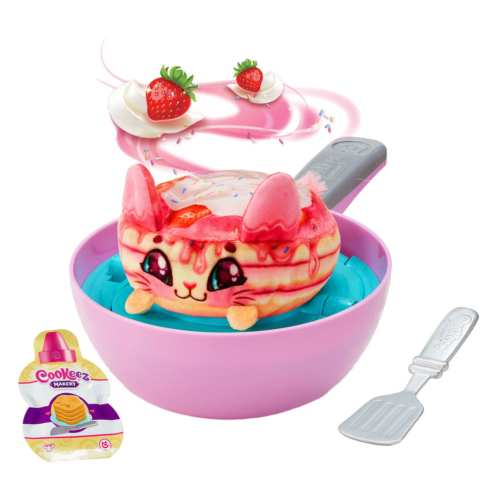 Maak je eigen pluchen verrassingsdier in deze speciale Cookeez Makery Pancake Treatz Koekenpan! Een speelgoed koekenpan waaruit een zacht en heerlijk geurend pluchen diertje tevoorschijn komt. Maar om deze te kunnen maken, moet je eerst het beslag maken. Knijp het pannenkoekbeslag in het midden van de pan en schud vervolgens de pan om een sissend geluid te horen, net alsof je echt aan het bakken bent! Probeer nu je pannenkoek te draaien in de pan door de pan omhoog te bewegen en zie hoe je schattige Pancake Treatz verrassingspluchen dier tevoorschijn komt! Het zijn allemaal heerlijk zachte en geurende verzamelbare pluchen diertjes in de vorm van schattige pannenkoektraktaties. Welke Pancake Treatz heb jij gemaakt? Er zijn er 3 om te maken: Blue Beary Beer, Strawberry Pankitty Kat en Choc Flip Puppy. Kun jij raden waar ze naar ruiken? Je kunt het proces keer op keer herhalen om familie en vrienden te verbazen. Leeftijdsindicatie: 5 jaar+.