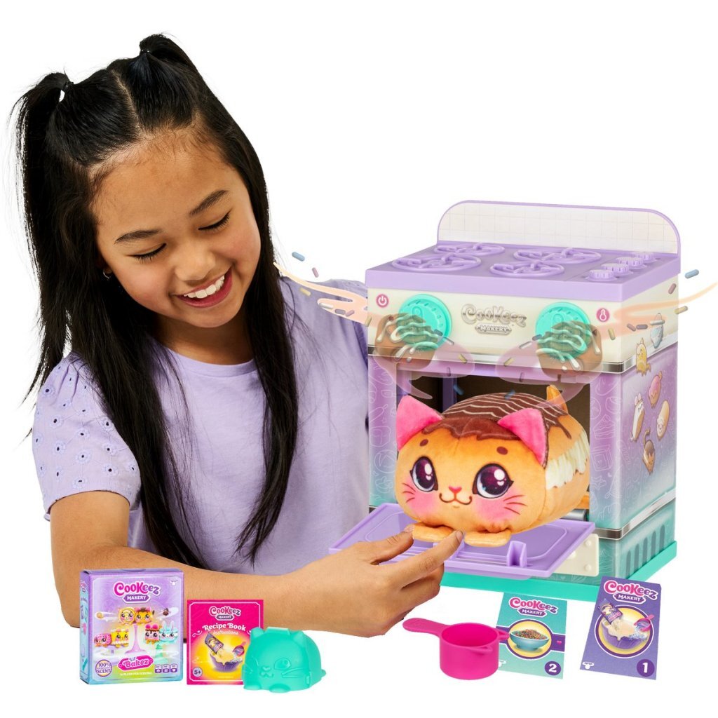 Mix & Bak een zoet, zacht pluchen dier in je eigen Cookeez Makery Lil' Bakez Oven! En ook al ontstaat deze zachte verrassing uit echt deeg, het is niet om op te eten, maar om heerlijk mee te knuffelen! Want als je de oven opent, zul je je eigen geurende knuffelvriend ontdekken! Je knuffel ontstaat uit deeg dat jij zelf moet mixen met de meegeleverde ingrediënten.