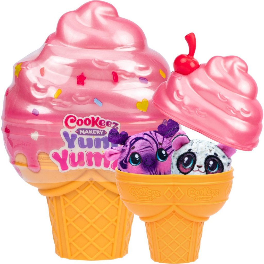 In dit ijshoorntje zitten twee superleuke, geurende verrassings-pluchen Yum Yumz diertjes verstopt! Ieder diertje is zo schattig en wat nog veel leuker is, ze ruiken allemaal anders naar een de heerlijke geur van een ijsje! Doe de ingrediënten in het hoorntje, open het slot met de kersensleutel en ontdek twee heerlijk ruikende Yum Yumz! Beplak het ijsje met de stickers dan het stickervel en versier al je spullen met de geurige knuffeltjes: hang ze aan je tas, je kleding of decoreer je kamer met deze schattige collectable diertjes!! Meer dan 30 Cookeez Makery Yum Yumz om te verzamelen. Schattig, lief en leuk om te ontmoeten! Verzamel gewone, zeldzame en ultrazeldzame geurende verrassings-pluchen diertjes. Geschikt voor kinderen vanaf 5 jaar.