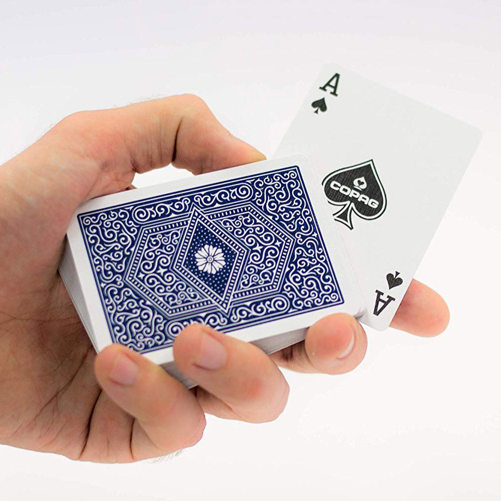 Deze slimline Copag speelkaarten zijn gedrukt volgens een specifieke techniek en op een specifieke karton. Dit zorgt ervoor dat de kaarten een heel stuk dunner zijn en dus nog makkelijker en lichter in de hand liggen.