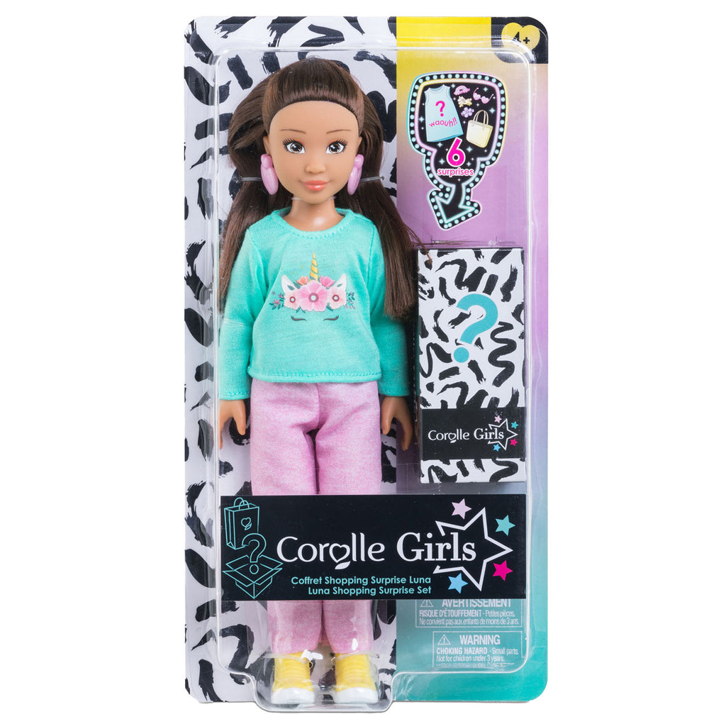 De Shopping Surprise Luna-box bestaat uit Luna, een etalagepop van 28 cm groot en 6 accessoires.