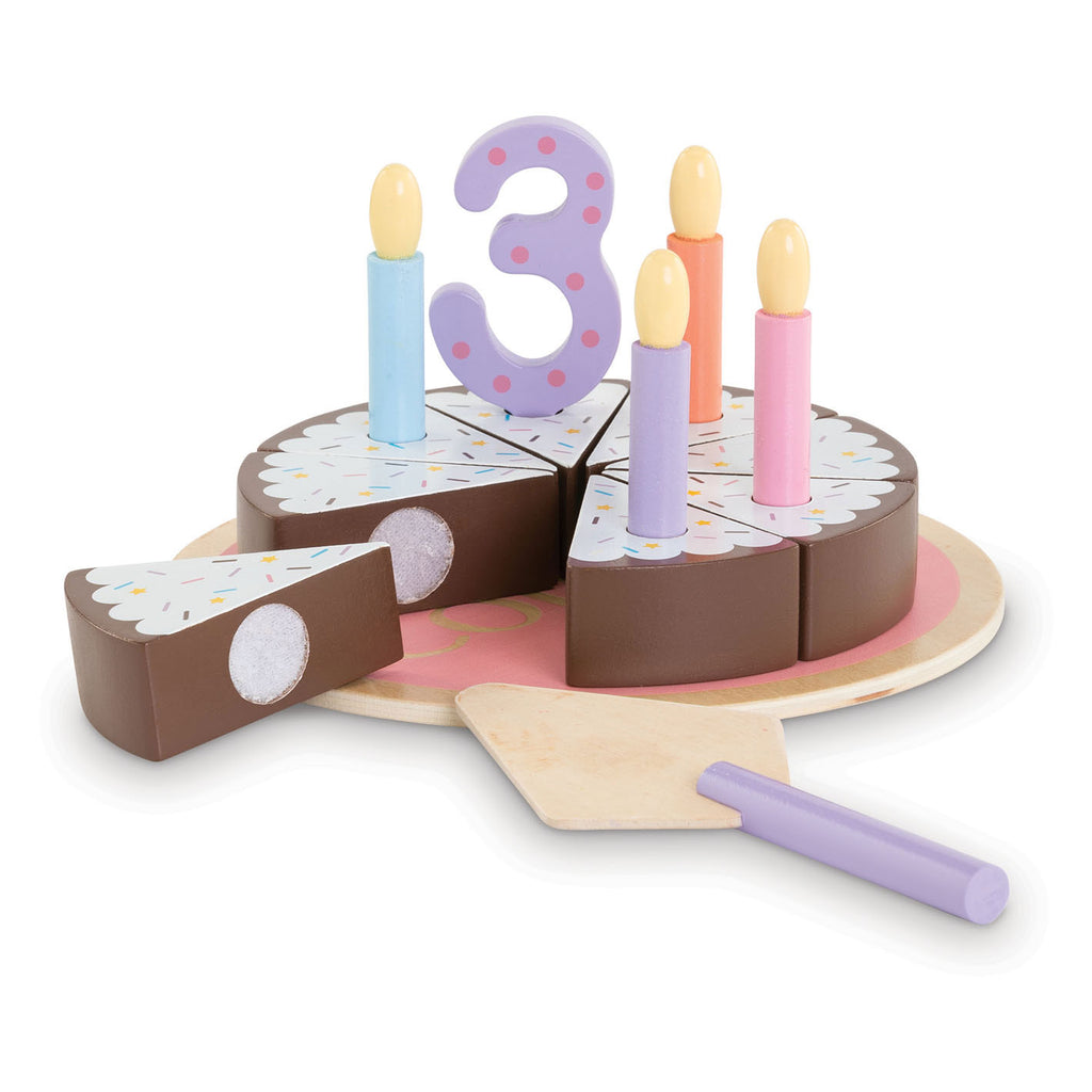 De houten verjaardagstaart van Corolle is perfect voor het vieren van de verjaardag van een grote babypop van 36 of 42 cm. Het bevat 18 accessoires: acht stukken cake met klittenband, klaar om te worden geserveerd, vier cijfers (1, 2, 3 en 4), vier kaarsen, een taartschep en een dienblad.