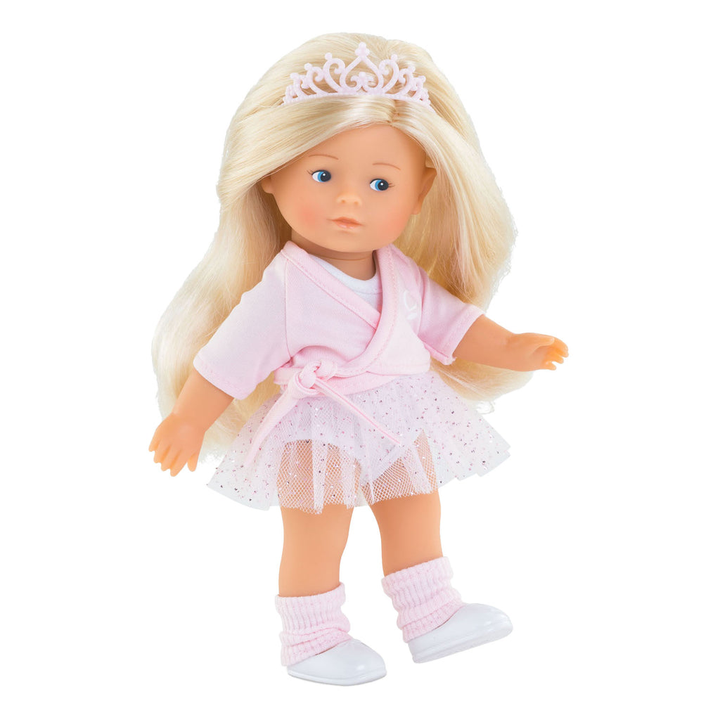 Corolle Rosy Ballerina Set met 1 Corolle Minipop van 20 centimeter groot, gemaakt van vinyl. Ze draagt een balletpakje en wordt geleverd met tutu, balletvestje en beenwarmers. Geschikt vanaf 3 jaar.