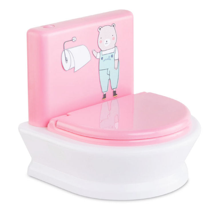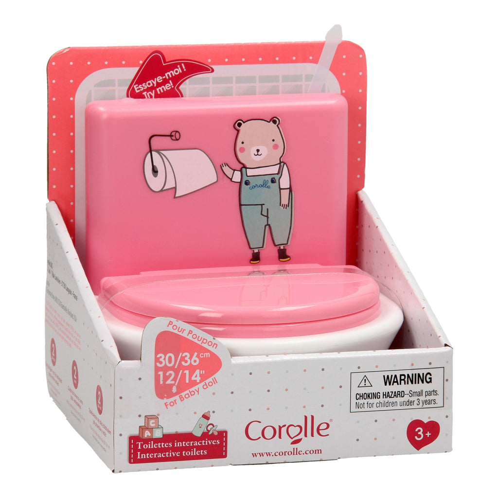 Laat jouw pop een plasje doen op de Corolle Mon Grand Poupon Interactieve WC. Wanneer je pop klaar is met het doen van een plasje of een grote boodschap druk je op het roze knopje, je hoort dan alsof de wc echt aan het doorspoelen is. Werkt op 3 knoopcel batterijen (batterijen zijn inbegrepen). Geschikt voor Corolle poppen van 36 centimeter.