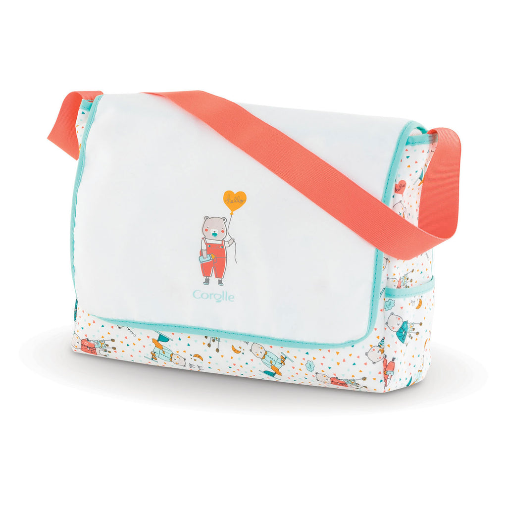 Poppen luiertas van Corolle met potje, luier, speen, flesje, zeep, slab en verschoonmatje.