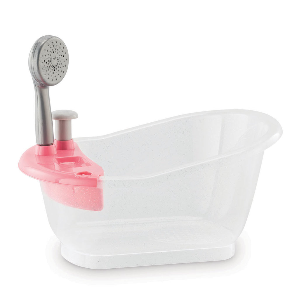 Laat jouw pop lekker badderen in het Corolle Mon Grand Poupon Poppenbad. Wanneer je het badje vult met water en telkens op de grijze knop drukt, wordt het water naar boven gepompt en komen er waterstralen uit de sproeier. Geschikt voor Corolle poppen van 30 en 36 centimeter.
