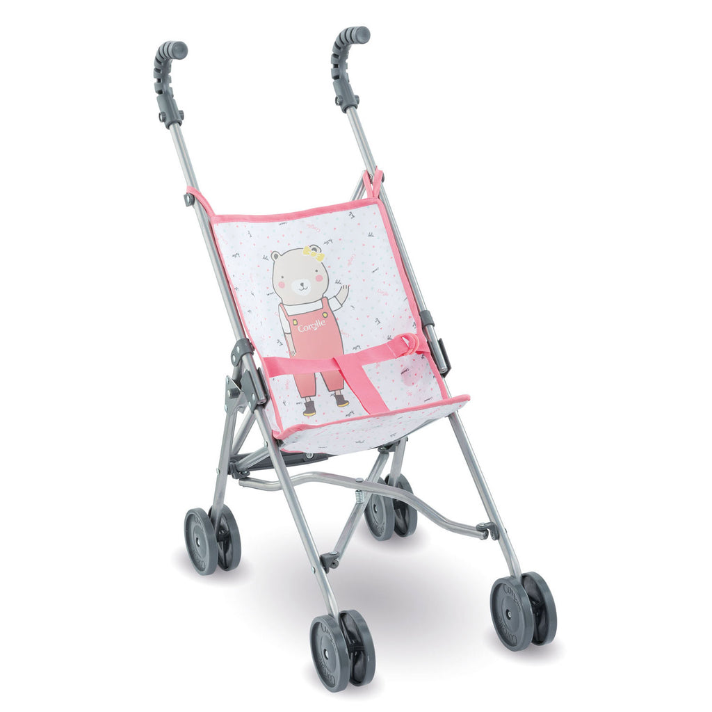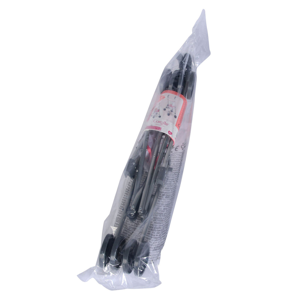 De poppenbuggy is gemaakt van kunststof en stof. De stof is voorzien van een print. De buggy kan ingeklapt worden en is zo gemakkelijk mee te nemen. Geschikt voor poppen van 36 tot 42 cm. Afmetingen: 63 x 28 x 45 cm.