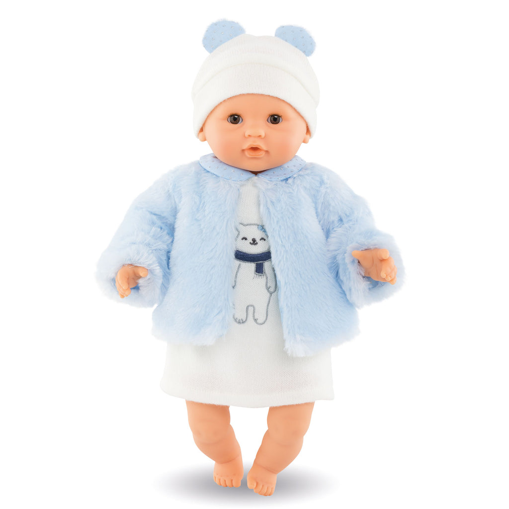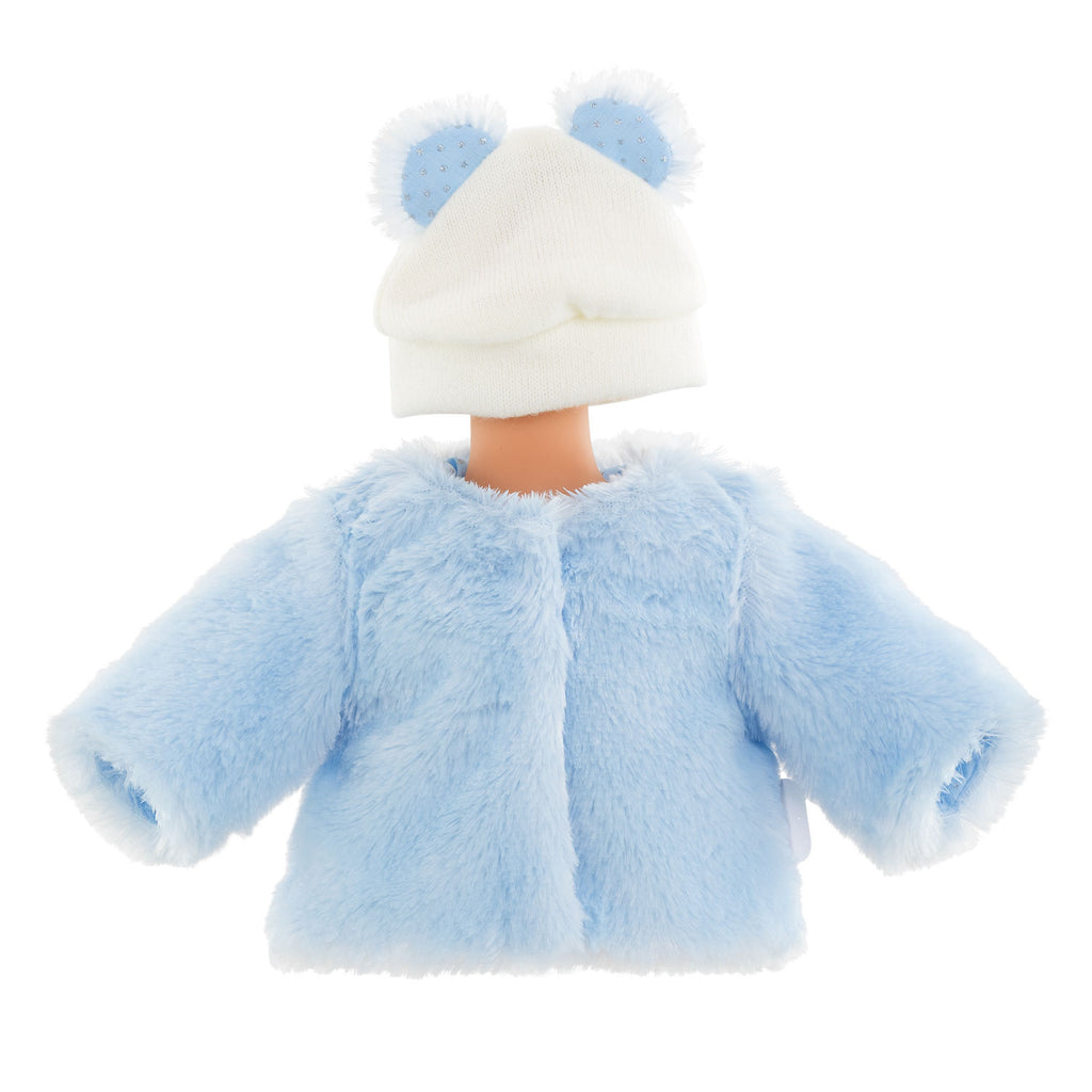 Met deze lichtblauwe winterjas heb je er twee voor de prijs van één! Het jasje kan namelijk ook binnenstebuiten gedragen worden waardoor je kunt afwisselen. Kies je voor de fluweelzachte buitenkant of voor de buitenkant met glitters? Geschikt voor Corolle poppen van 30 centimeter.