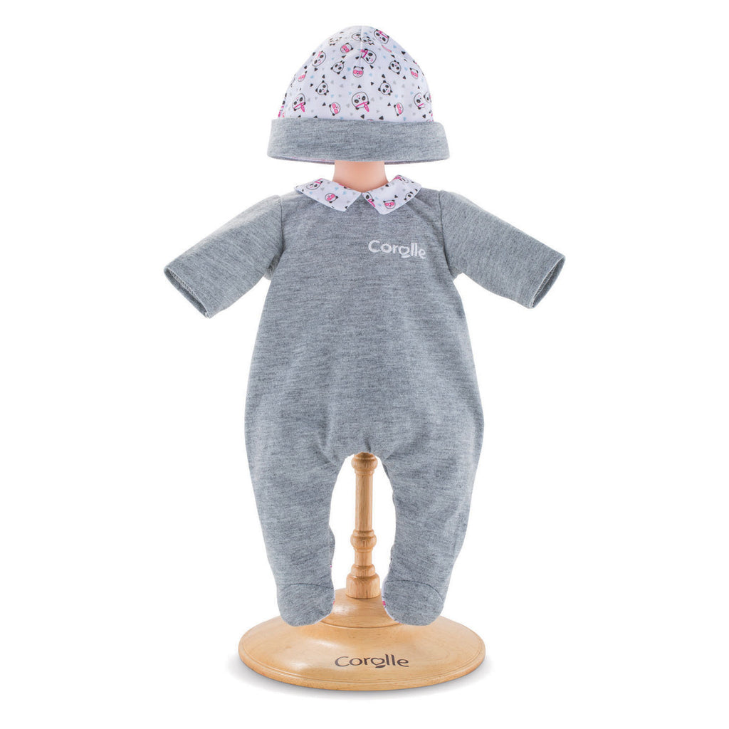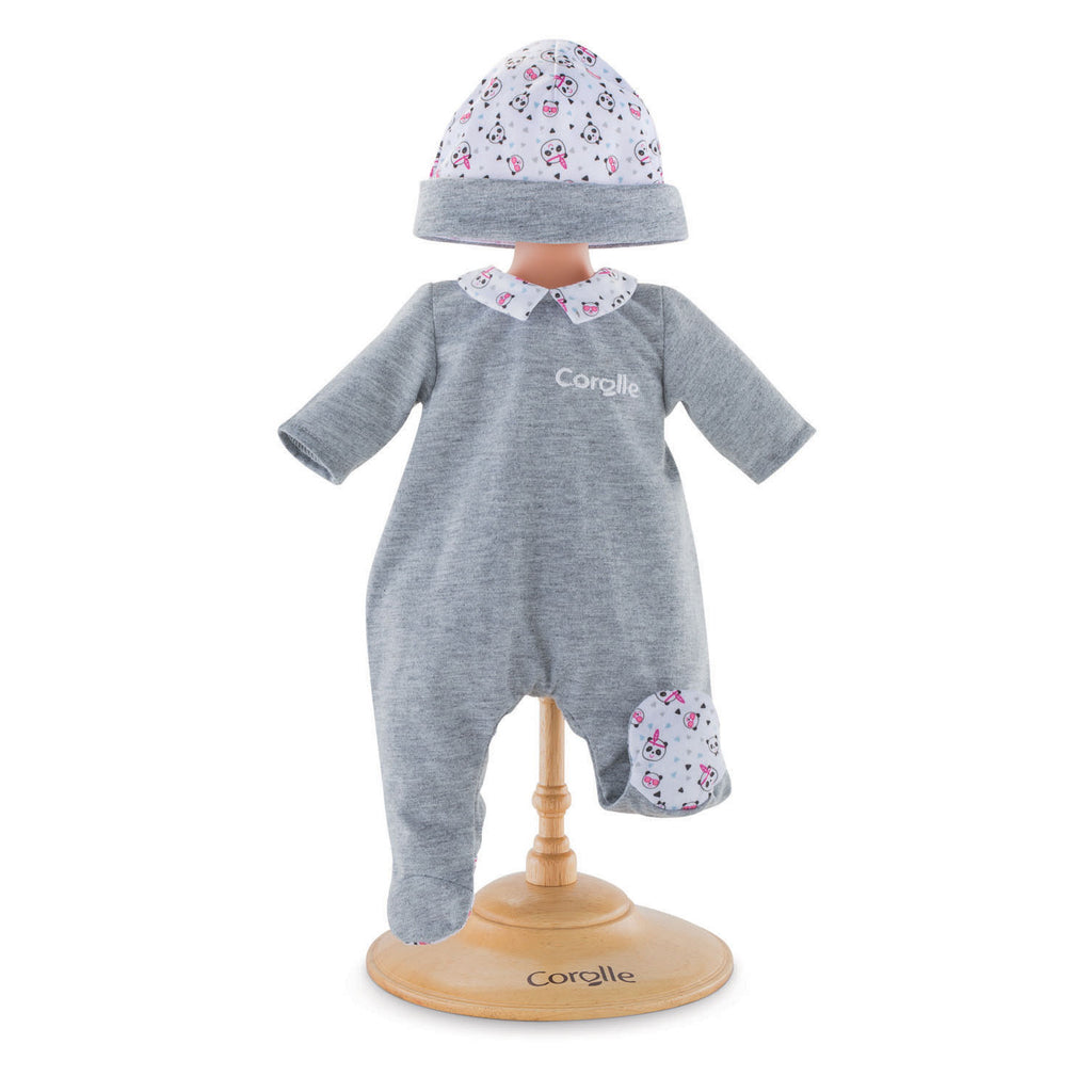 Laat je babypop heerlijk slapen in zijn nieuwe Pyjama Panda Party van Corolle Mon Premier Poupon! De superzachte grijze Onesie pyjama is voorzien van een schattig kraagje en mutsje met zwart-witte pandaprint. Geschikt voor poppen van 30 centimeter.