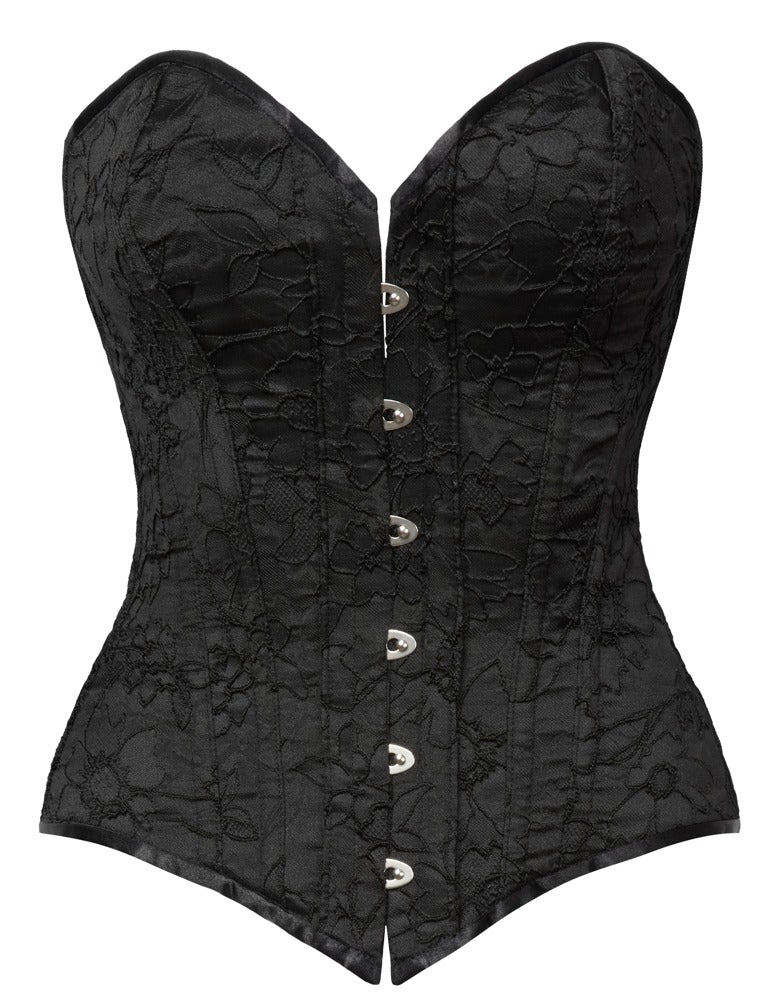 Strapless full-bust corsage van Cottelli PARTY in zijdezacht matzwart. Geïntegreerde voorgevormde baleinen (6 aan elke kant) voor een gedefinieerd silhouet en mooie rondingen. Snelsluiting (haak & oog) aan de voorkant voor gemakkelijk aan- en uitkleden. De doorlopende vetersluiting aan de achterkant is gevoerd met stof zodat er geen huid door kan schijnen.