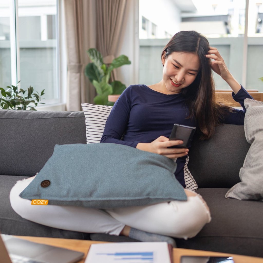 - Het kussen is voorzien van infraroodtechnologie en een krachtige accu van 10.000 mAh die op één lading tot wel 8 uur heerlijke warmte levert