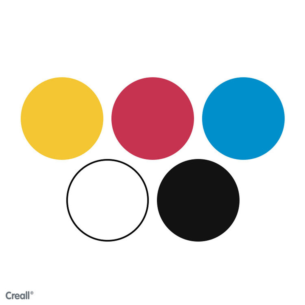 Creall Studio Acrylverf, 5 kleuren (geel, rood, blauw, wit en zwart), 120ml per kleur.