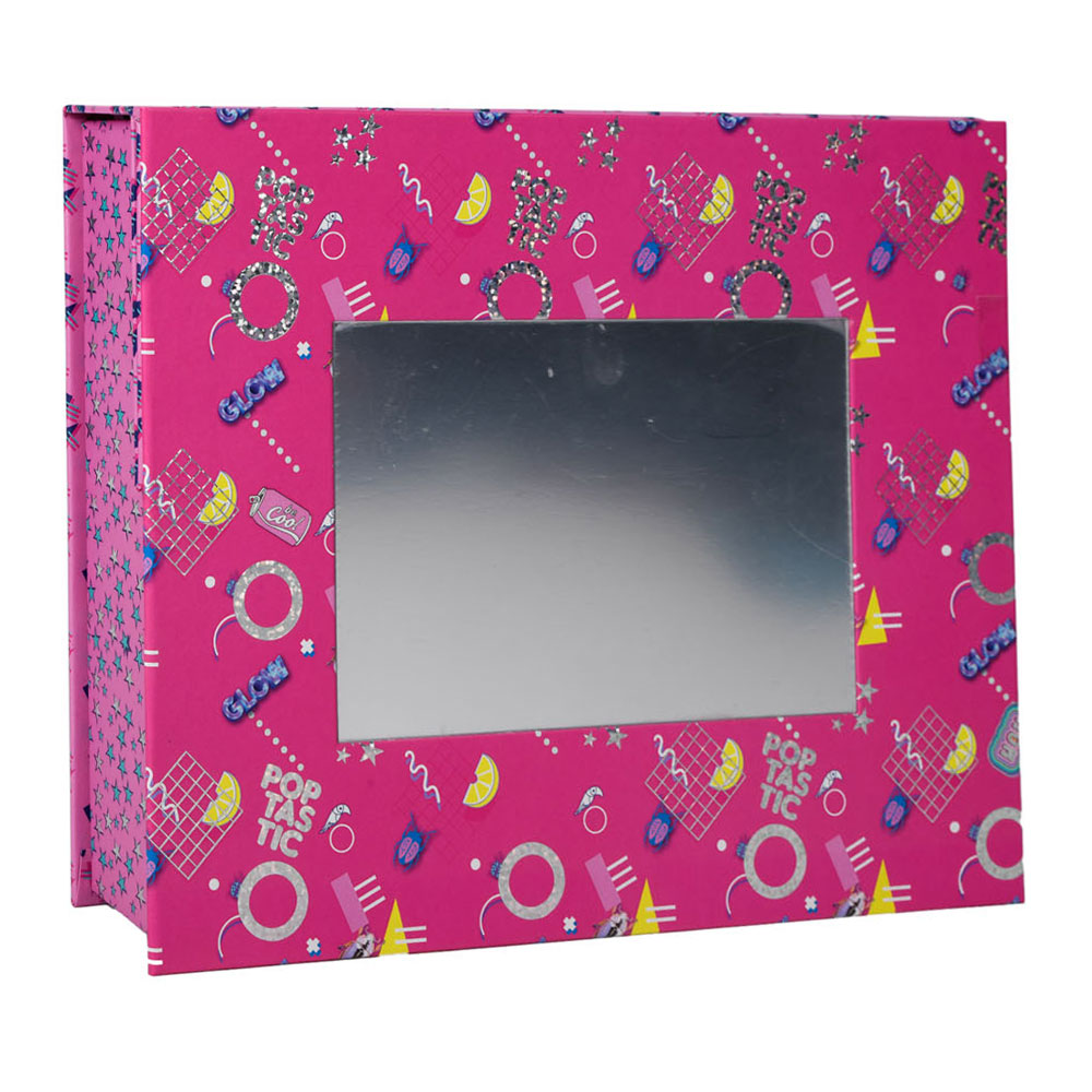 Create It! Make up juwelendoos met spiegel en een prachtige print. De binnenkant van de kartonnen sieradendoos is verdeeld in 4 vakken om sieraden of andere spullen in op te bergen.