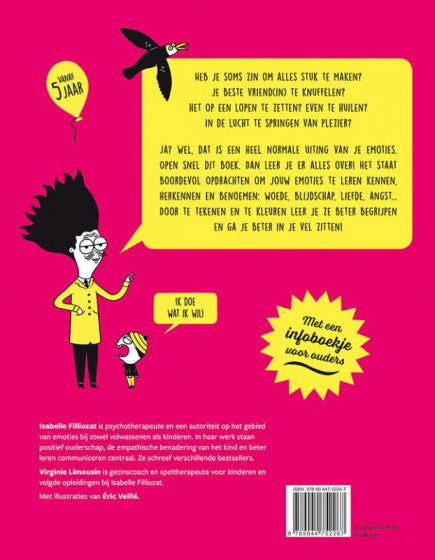 Heb je soms zin om alles stuk te maken? Om je beste vriend(in) te knuffelen? Om het op een lopen te zetten? Om even te huilen? Om in de lucht te springen van plezier? Ja? Dat is een heel normale uiting van je emoties. Open snel dit boek, dan leer je er alles over! Met een infoboekje voor ouders.