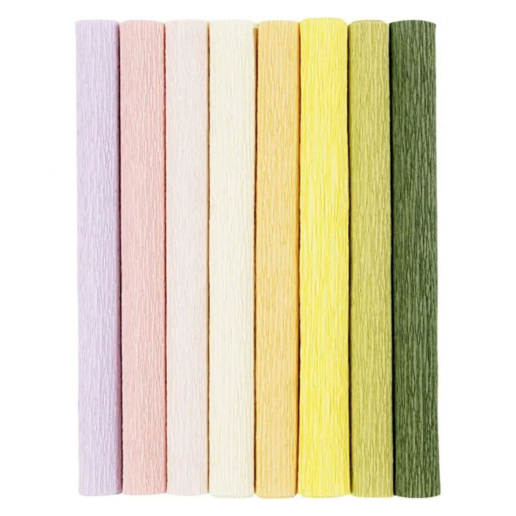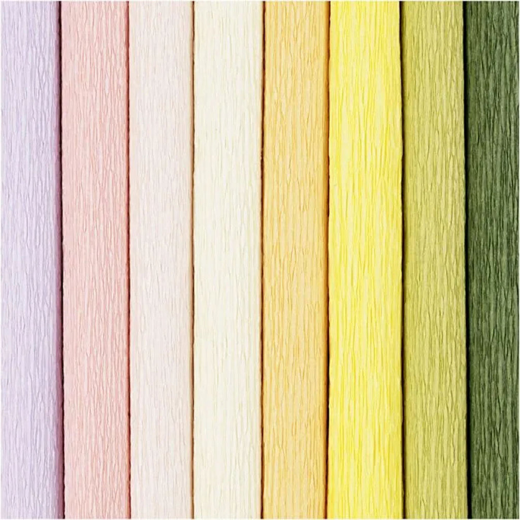 Crêpepapier met een crêpe-verhouding van 180%, waardoor het perfect is voor het maken van papieren bloemen, omdat het gemakkelijk kan worden uitgerekt en gevormd zonder te breken. Het papier heeft een mooi gecrêpt oppervlak en verliest zijn vorm niet nadat het is gevormd en bewerkt.