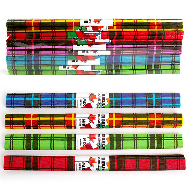 Set van 10 rollen crêpepapier met ruitjes. De verschillende kleuren crêpepapier maken het nog leuker om mee te knutselen.