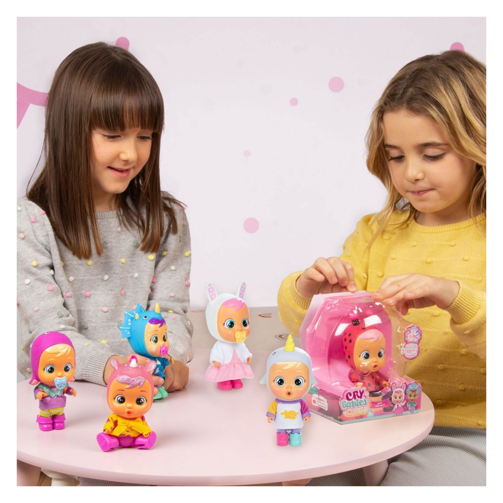 De nieuwe Dress Me Up collectie van Cry Babies Magic Tears is er! Er zijn meer dan 12 nieuwe Cry Babies te verzamelen! Ze hebben allemaal hun eigen schoenen en kleding, die je aan en uit kunt trekken. Heb je meerdere Cry Babies Magic Tears, dan kun je hun outfits mixen en matchen! In de verpakking vind je 5 verrassingsaccessoires. Geef de Cry Babies Magic Tears-pop te drinken met de babyfles, knijp in haar buik en zie hoe ze echte tranen huilt! Spaar ze allemaal! Leeftijdsindicatie: 3 jaar+.