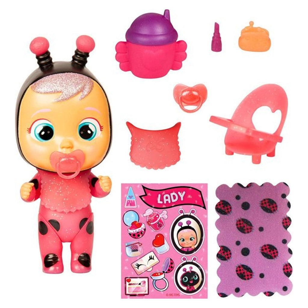 Vul de drinkbeker met water, geef je Cry Babies Magic Tears te drinken en zie hoe ze echte, gekleurde traantjes huilen als je ze in hun buikje knijpt.