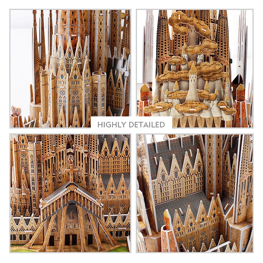Cubic Fun National Geographic 3D Puzzel Sagrada Familiain Barcelona. Het meest bezochte monument in Spanje en, ontworpen door de wereldberoemde art nouveau-architect Antoní Gaudí. Dit architectonisch meesterwerk is nog in aanbouw en zal naar verwachting niet voor 2026 worden voltooid. Hoogte van het in elkaar gezette bouwwerk: 33 cm. Bestaat uit 184 losse onderdelen, die zonder gereedschap of lijm in elkaar gezet kunnen worden. Inclusief geïllustreerde handleiding.