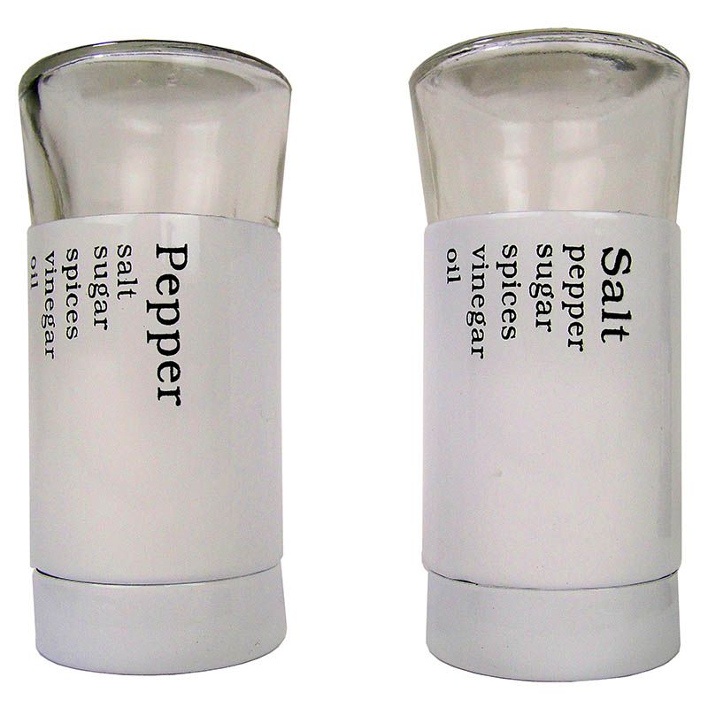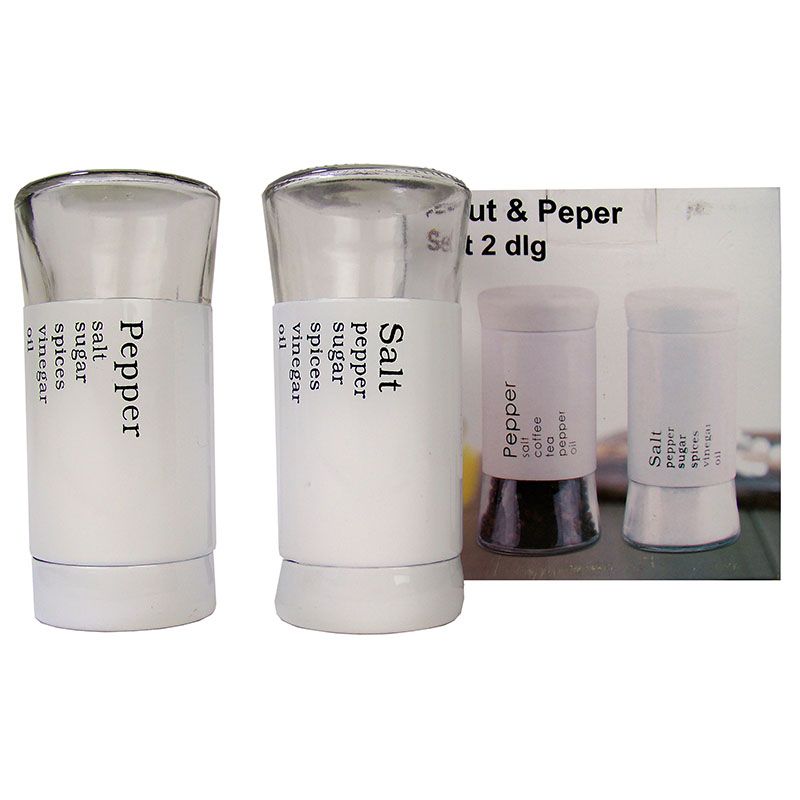 - Een moderne glazen/metalen set van een peper- en zoutflacon.