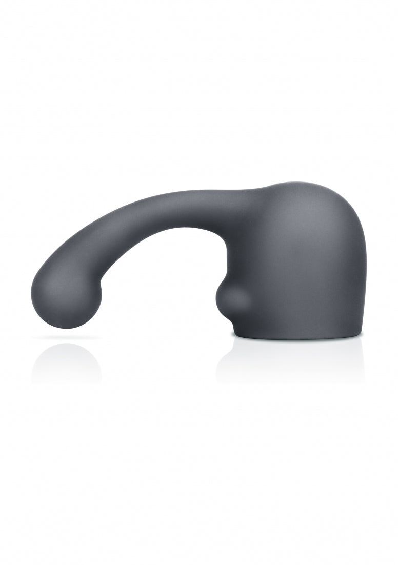 Een gebogen grijs opzetstuk met gewichtjes voor de le Wand Massager. Met twee gewichten in de hals en een in de kop van de stimulatie-arm. De gewichtjes geven een gevoel van volheid. Met een balletje voor clitorisstimulatie.