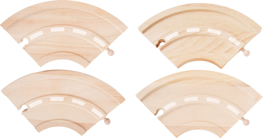Met deze set gebogen wegstukken uit onze kleine voetwereld speelwerelden, kan je wegennet worden uitgebreid zoals jij dat wilt. De vier houten gebogen stukken zijn een praktische manier om meer straten te bouwen, waardoor je wegennet interessanter wordt en je stad groter. Geschikt voor alle producten en accessoires uit onze small foot world serie.