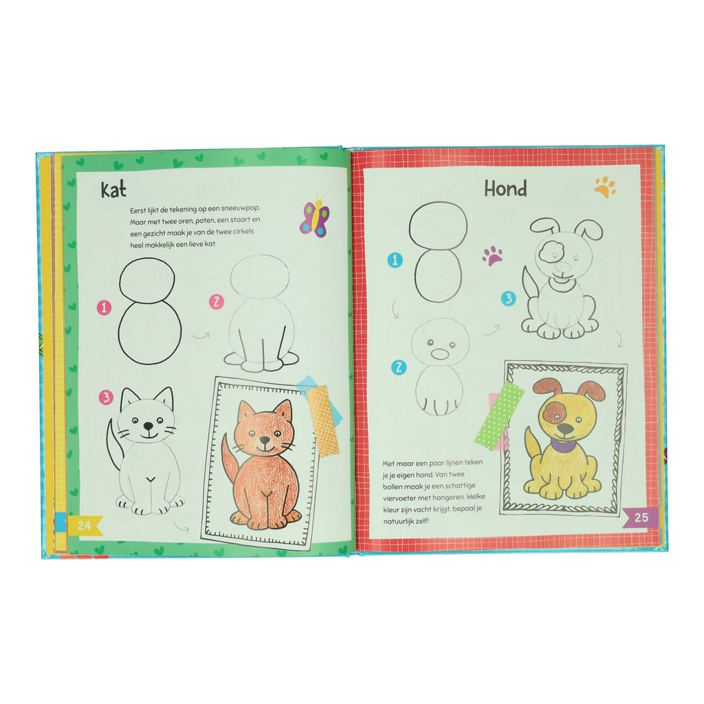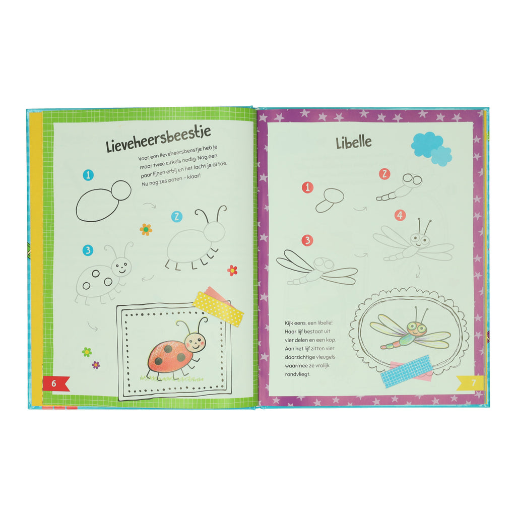 Het boek bevat meer dan 55 geïllustreerde motieven, vergezeld van een korte tekst die kleintjes helpen het tekenen onder de knie te krijgen!