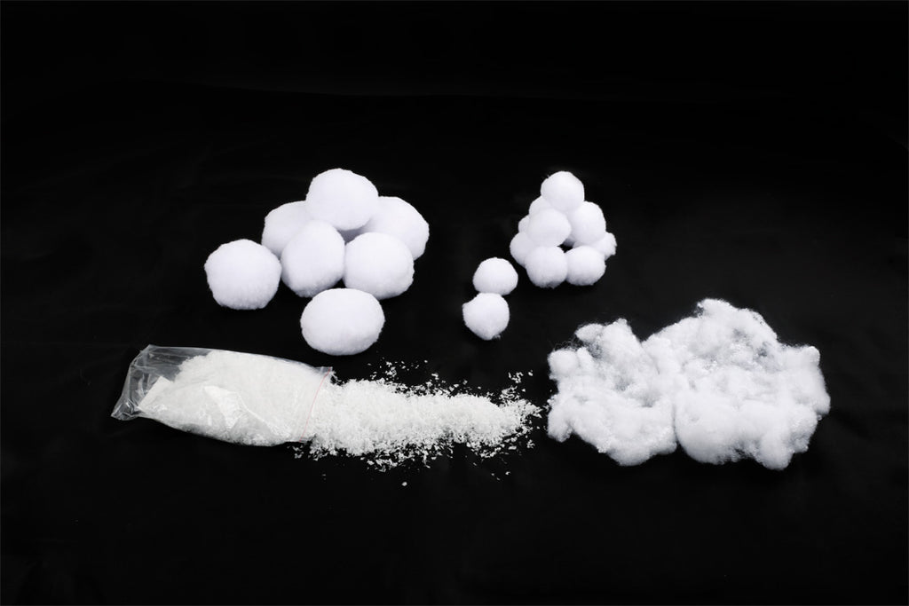 DIY-Winterlandschap. Deze prachtige decoratieve sneeuw dient ter decoratie. Je kunt het overal op huizen en bloemstukken leggen of je kunt de kleine sneeuwballen met een lint aan het raam hangen.