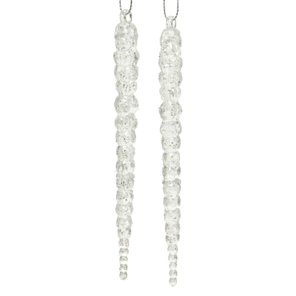 Decoris witte ijspegelhangers van 14,5 cm groot, 2 stuks