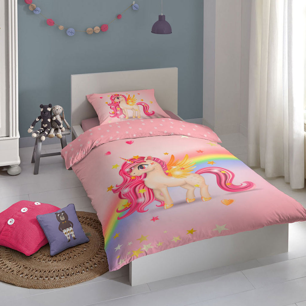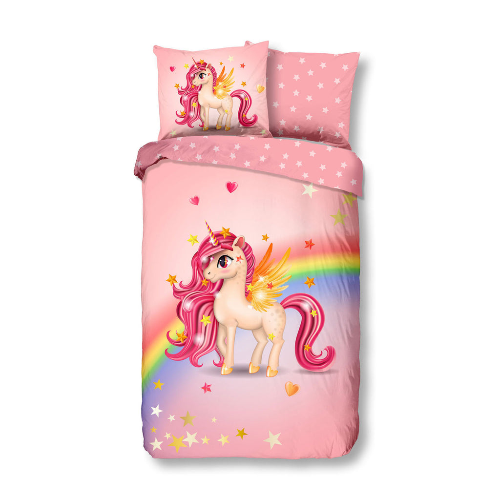 Dekbedovertrek Eenhoorn Roze. Afmeting: 1-persoons.