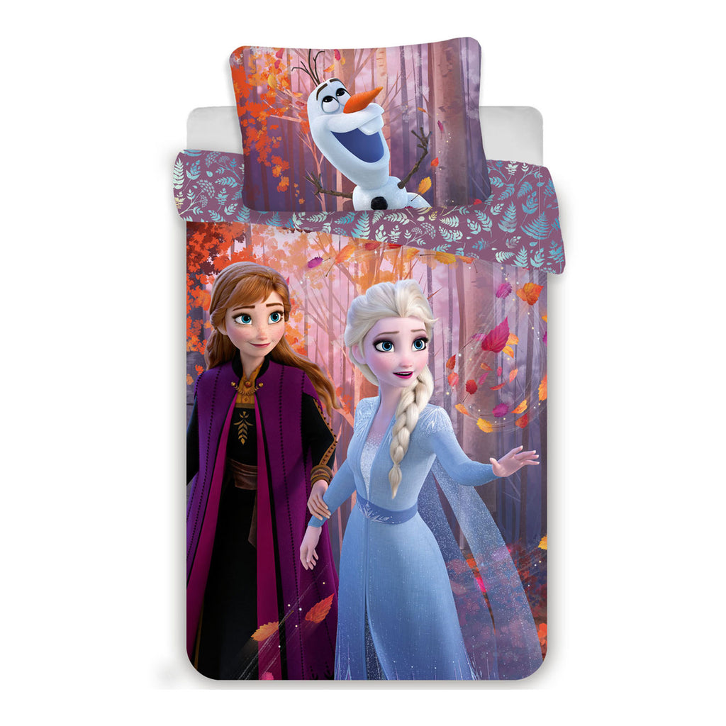 Dekbedovertrek Frozen Elsa en Anna met één grote kussensloop van 70 x 90 cm, de dekbedhoes is 140 x 200 cm. Deze set is 100% katoen en is wasbaar op 40 graden en is geschikt voor de droger.