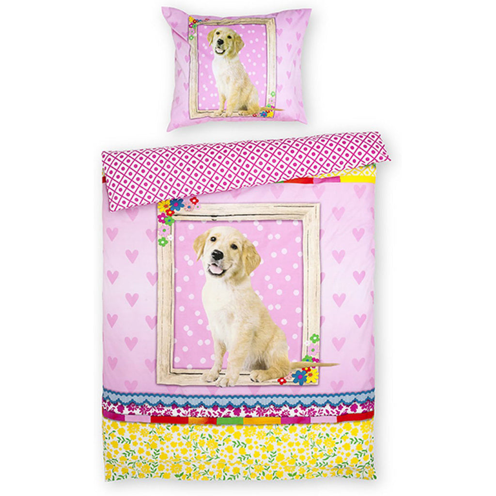 Speciaal voor hondenliefhebbers is er het Dekbedovertrek Hond! Wat ziet dit katoenen overtrek er vrolijk uit: felle kleuren, allerlei patronen en een schattige hond in het midden en op het kussen. Dat slaapt lekker, het Dekbedovertrek Hond! Afmeting: 200x140 centimeter.