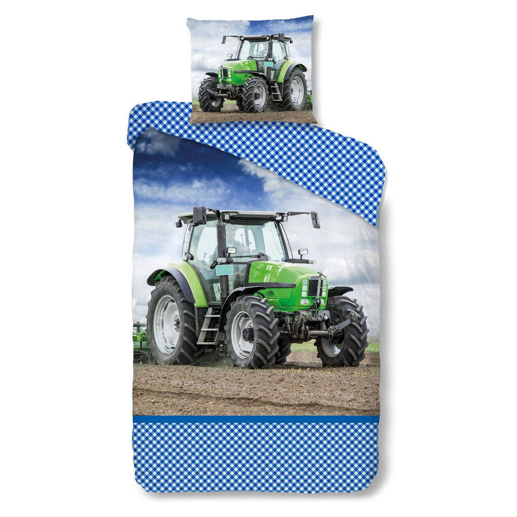 Dit 1-persoons Dekbedovertrek is voorzien van een prachtige foto-print van een tractor en heeft een blauw blokjesdessin. Het overtrek is 240 cm lang en dus geschikt voor dekbedden tot 220 cm. Verder heeft het dekbedovertrek een easy-care behandeling ondergaan, dit betekent dat het het dekbedovertrek makkelijker te strijken is. De kwaliteit is 100% katoen en het dekbedovertrek wordt geleverd met 1 kussensloop (60 x 70 cm).