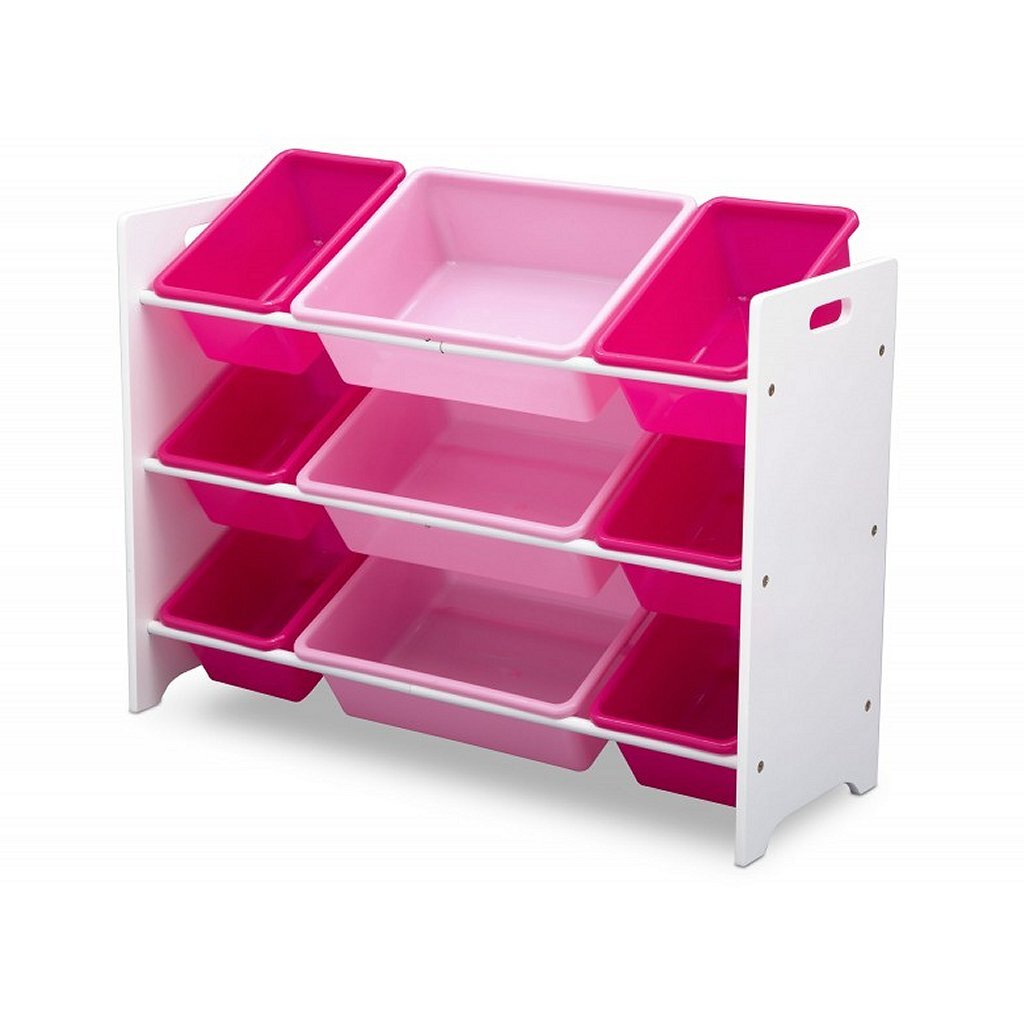 Deze brede speelgoed opbergkastin wit met roze past perfect in elke kamer. Dit multifunctionele meubelstuk leert het kindal jong op een speelse manierhet speelgoed op te ruimen.